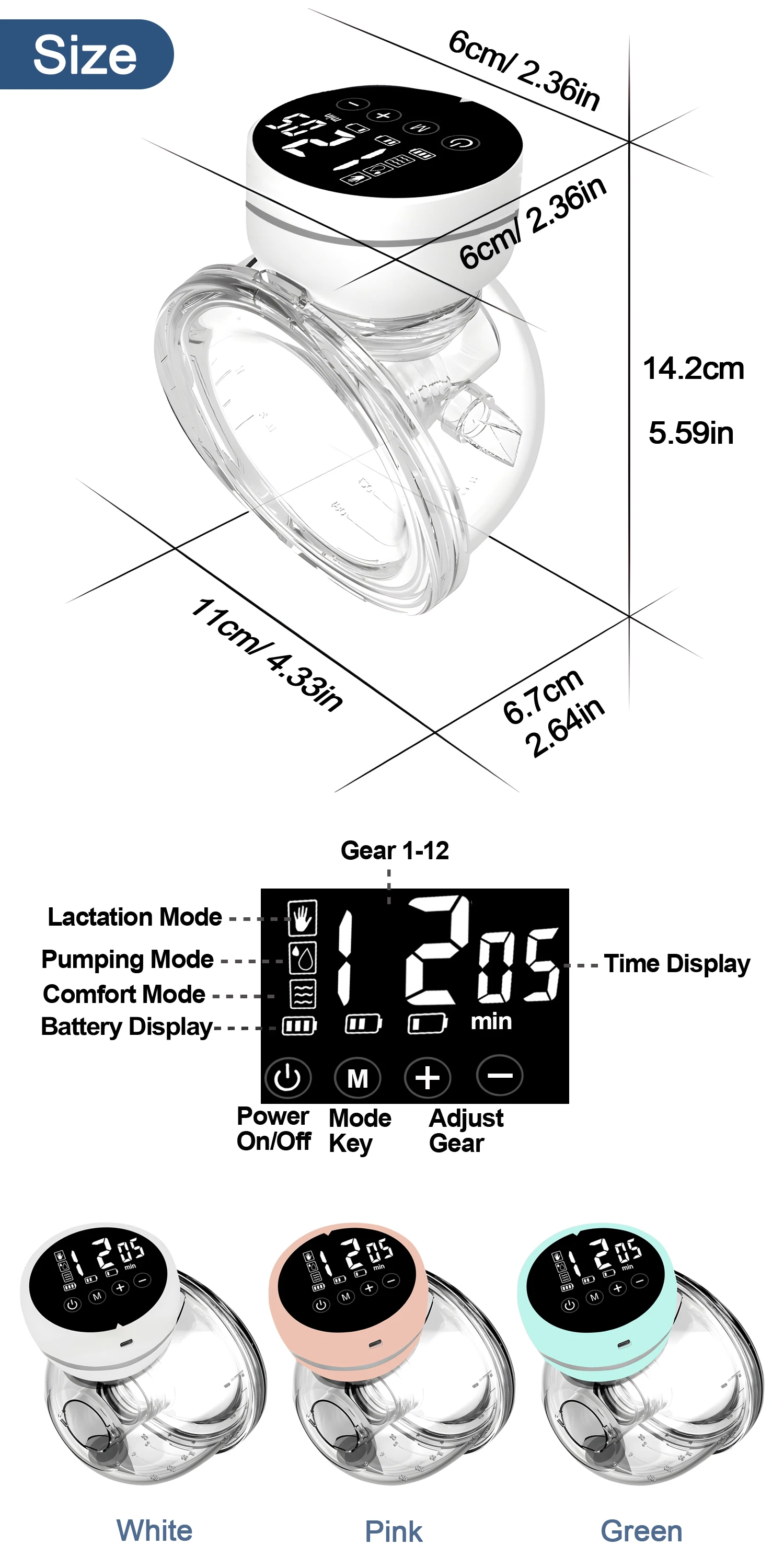 The Electric Breast Pump is a fully automatic, wearable device designed for modern mothers seeking convenience and efficiency. Its portable design allows discreet use anytime, anywhere, supporting busy lifestyles without compromising comfort. Engineered to gently and effectively express milk, it helps maintain a steady milk supply while reducing discomfort. This pump is an essential tool for mother and baby care, combining advanced technology with user-friendly features to simplify breastfeeding and promote infant nutrition. Ideal for on-the-go moms, it ensures reliable performance and ease of cleaning, making breastfeeding management more manageable and stress-free.