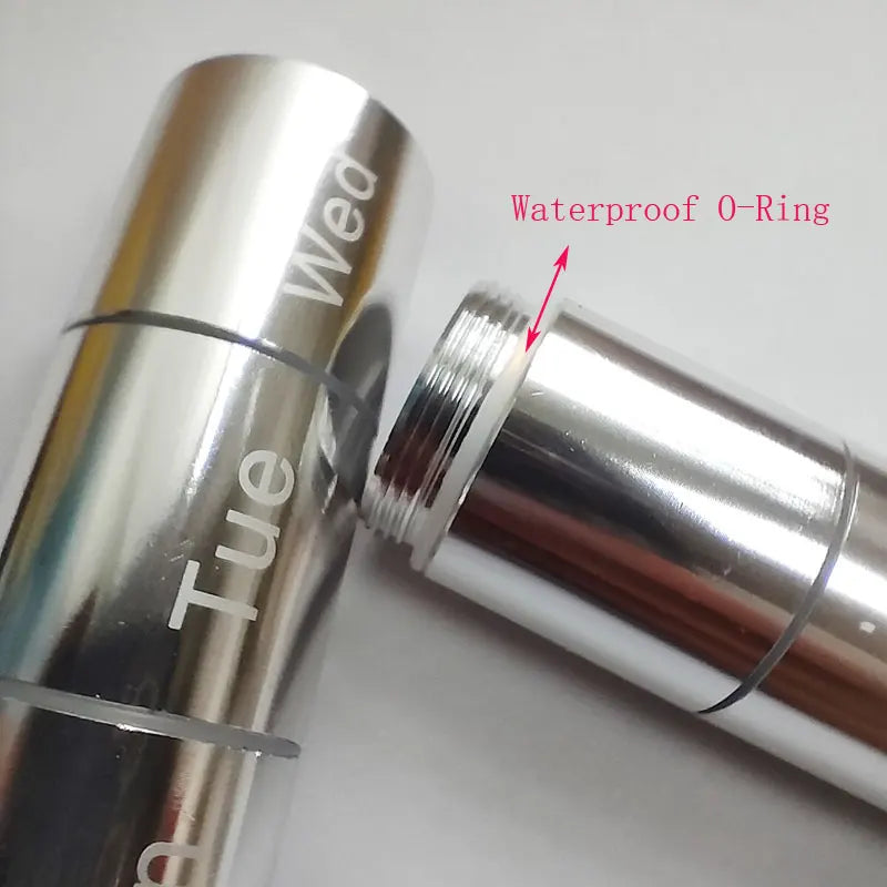 3- Equipped with a superior sealing waterproof ring, this pill dispenser provides moisture and water resistance, ensuring your medication remains dry and protected at all times.