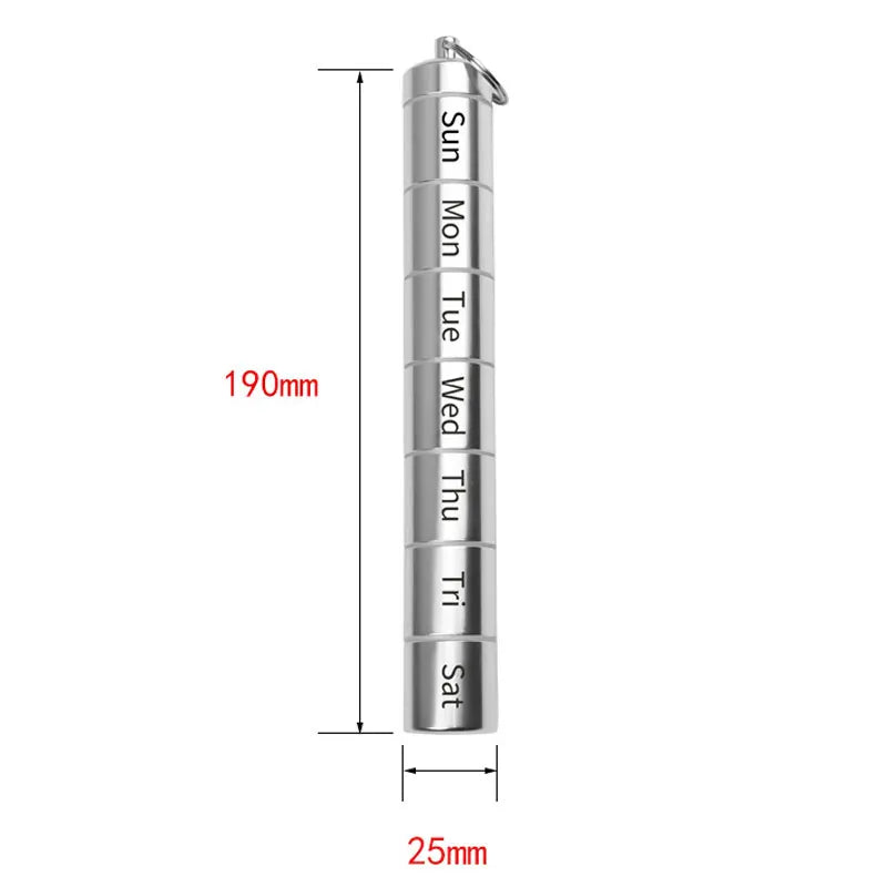 4- Measuring 7.4 inches in length with a diameter of 0.97 inches and compartments 0.86 inches deep, this metal travel pill case offers a compact design that efficiently addresses the challenge of organizing medication while on the go.