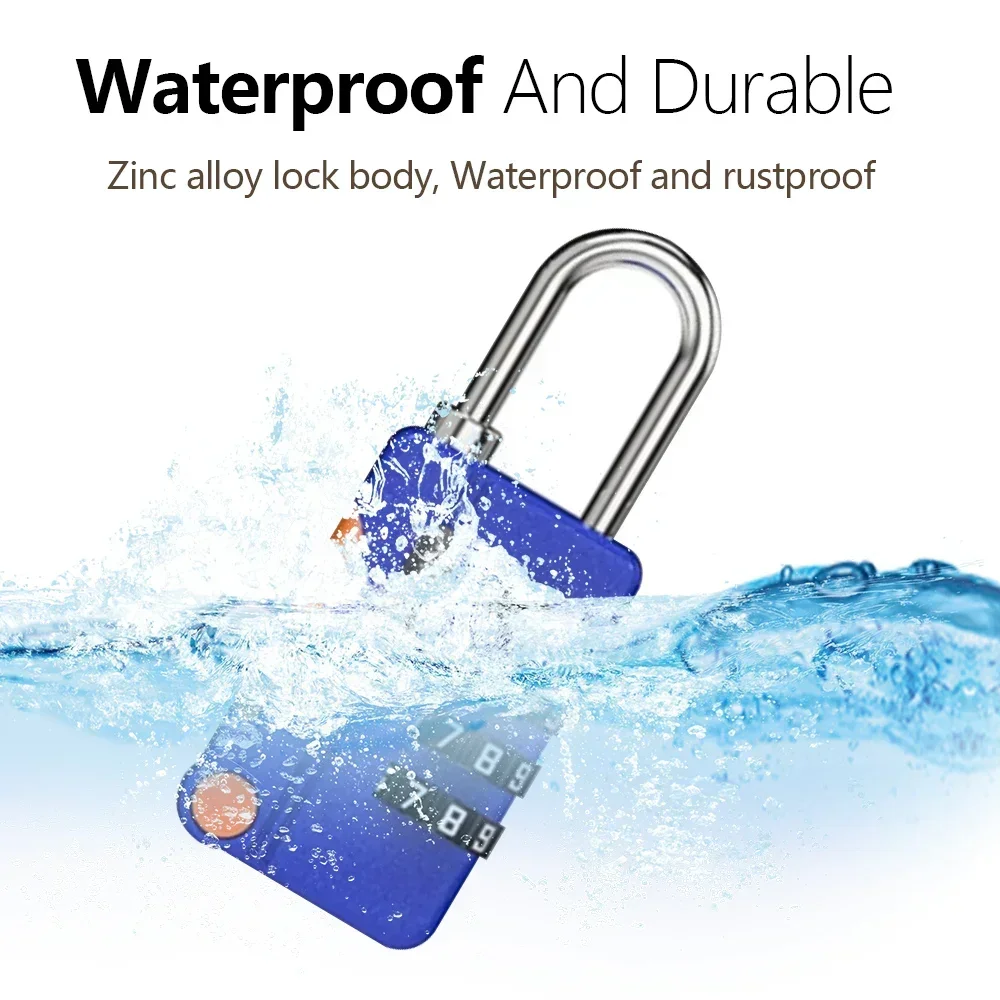 This 4-digit resettable combination padlock offers enhanced security with a code that's difficult to crack. Crafted from durable zinc alloy, it resists rust and weather conditions. Its compact size ensures easy portability for travel. Available in multiple colors to help you quickly identify your lock. Ideal for securing travel luggage, cabinets, gates, toolboxes, and lockers.